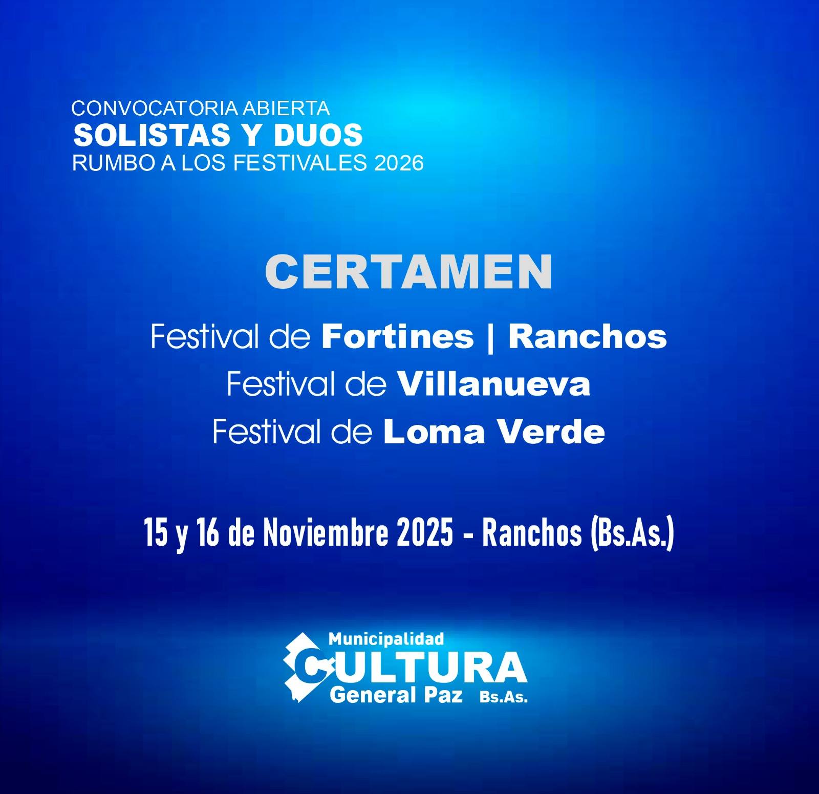 ¡Atención, oyentes de Radio Apacheta! 🎶 Si sos solista o tenés un dúo de folklore, ¡esta es tu oportunidad! La Municipalidad de General Paz te invita a participar del certamen "Rumbo a los Festivales 2026". Podés ganar un lugar en la grilla de los festivales de verano más importantes de la zona. Sobre el Certamen […]